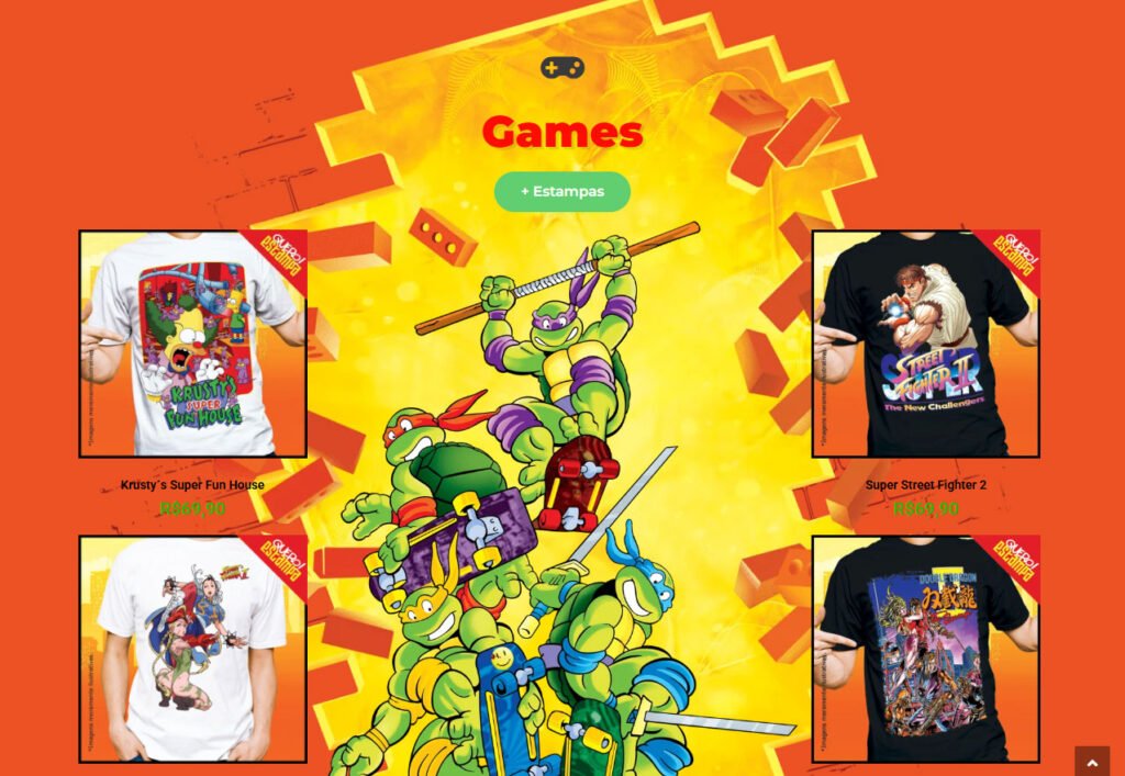 - Identidade Visual: A marca precisava transmitir confiança e criatividade. O layout reflete essa modernidade, utilizando elementos que organizam visualmente uma vasta gama de categorias, desde Street Fighter até Robocop.